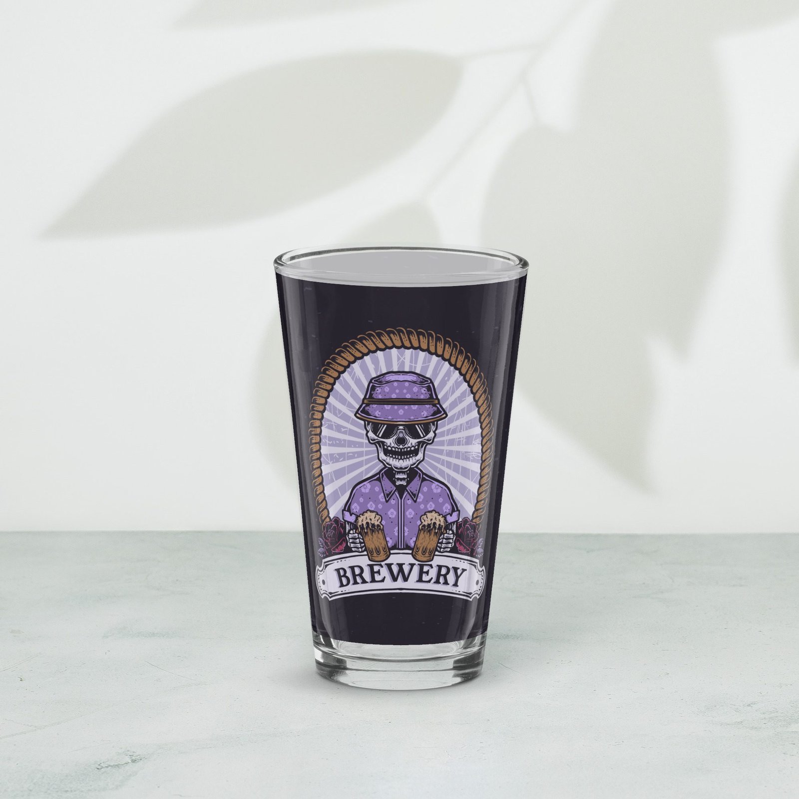 Vaso de cerveza 16 oz. «Skull holding beer»