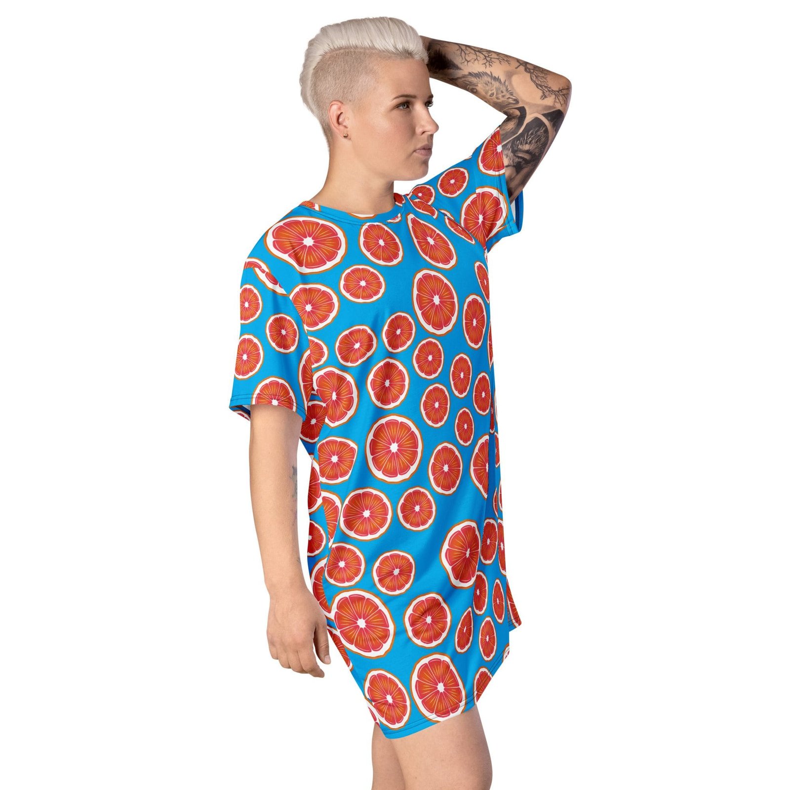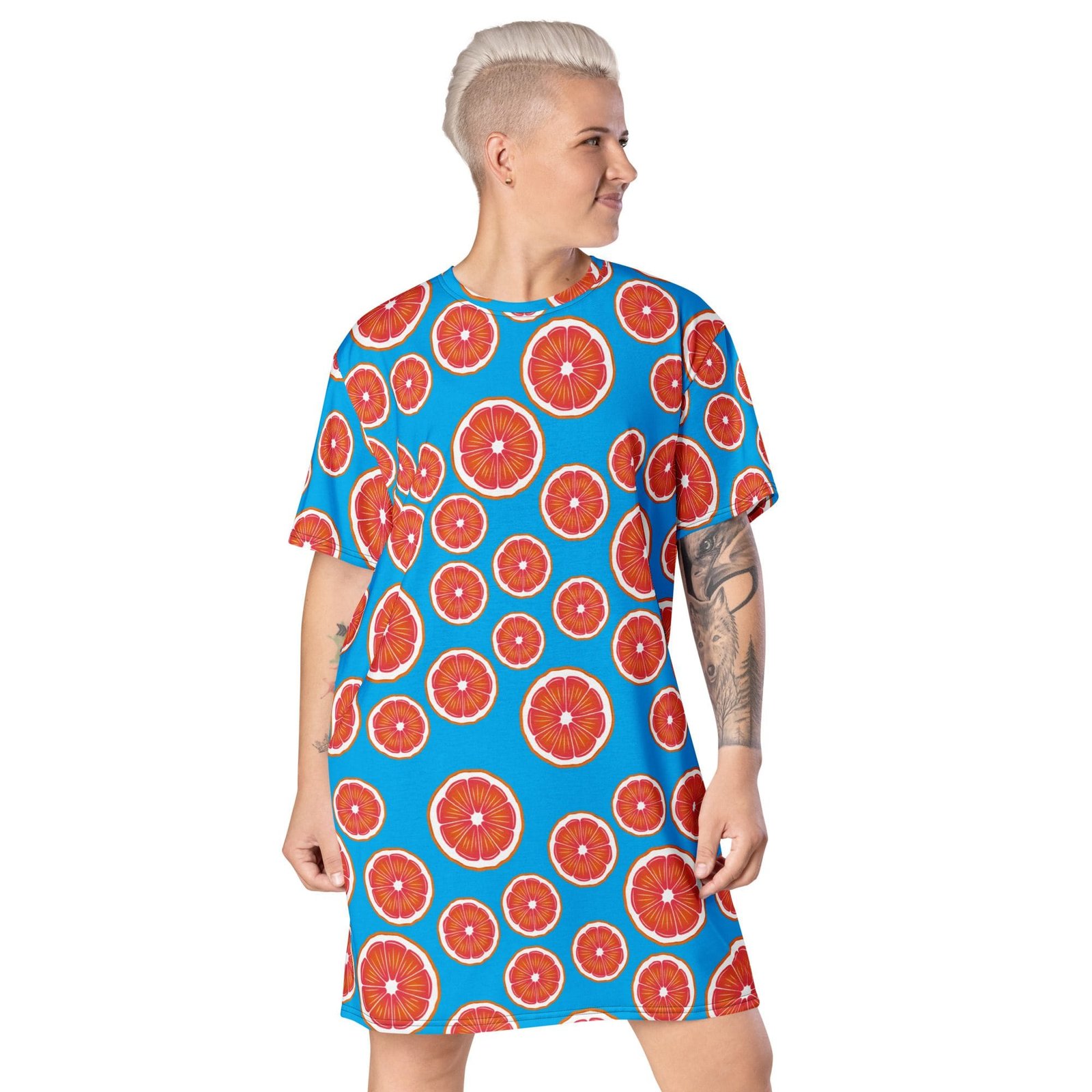 Vestido camiseta «Lemon». Este vestido es un básico para cualquier fan de este tipo de prendas. Y lo mejor de todo es que puedes llevarlo de muchas formas. Puedes vestirlo con una chaqueta o darle un aire más informal con unas zapatillas deportivas. Llévalo como camisón o incluso como la pieza central de un outfit más urbano: las opciones son infinitas. Su cómodo ajuste oversize demuestra que la comodidad también puede ser elegante.