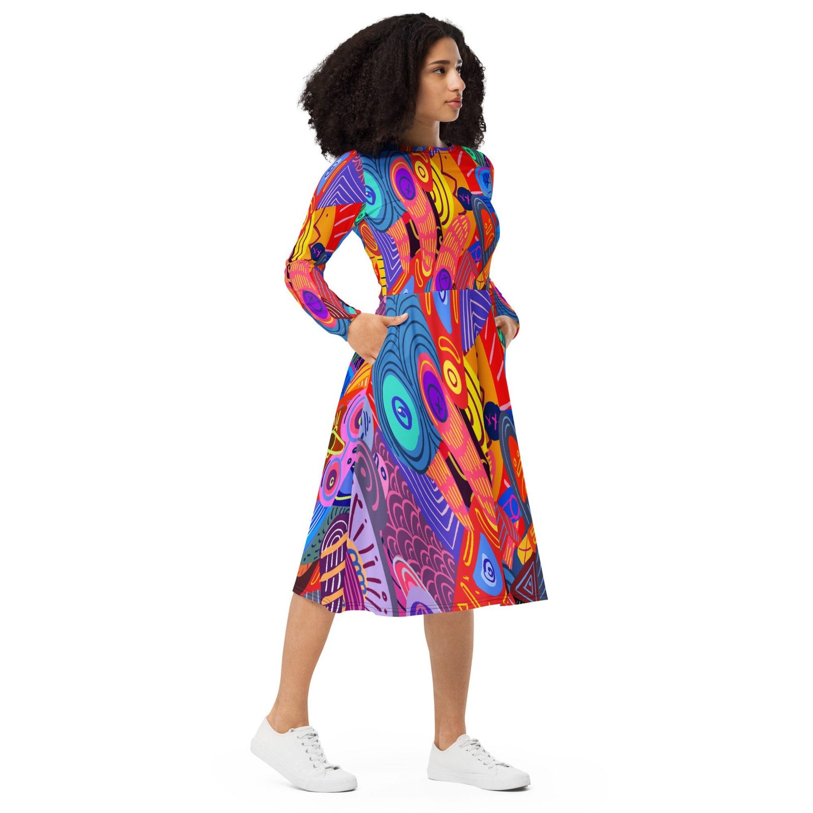 ¡Te presentamos tu nuevo vestido favorito! Su suave tejido y su favorecedor corte harán que te sientas cómoda y femenina durante todo el día. Además, la cintura ajustada y la parte inferior acampanada del vestido acentuarán la silueta naturalmente bella de quien lo lleve. ¿Lo mejor del vestido? ¡Que tiene bolsillos!