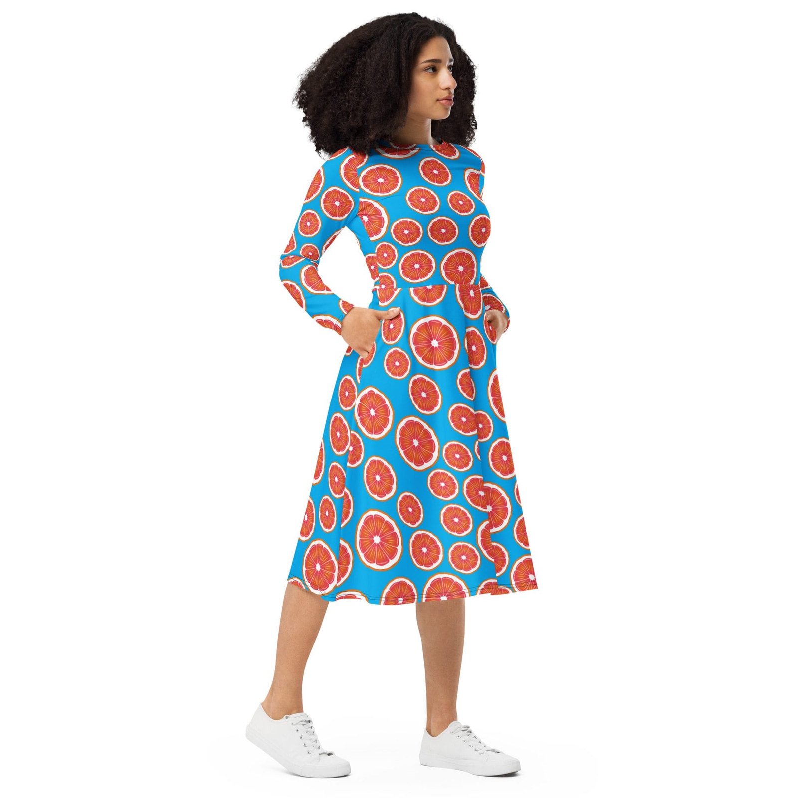 ¡Te presentamos tu nuevo vestido favorito! Su suave tejido y su favorecedor corte harán que te sientas cómoda y femenina durante todo el día. Además, la cintura ajustada y la parte inferior acampanada del vestido acentuarán la silueta naturalmente bella de quien lo lleve. ¿Lo mejor del vestido? ¡Que tiene bolsillos!